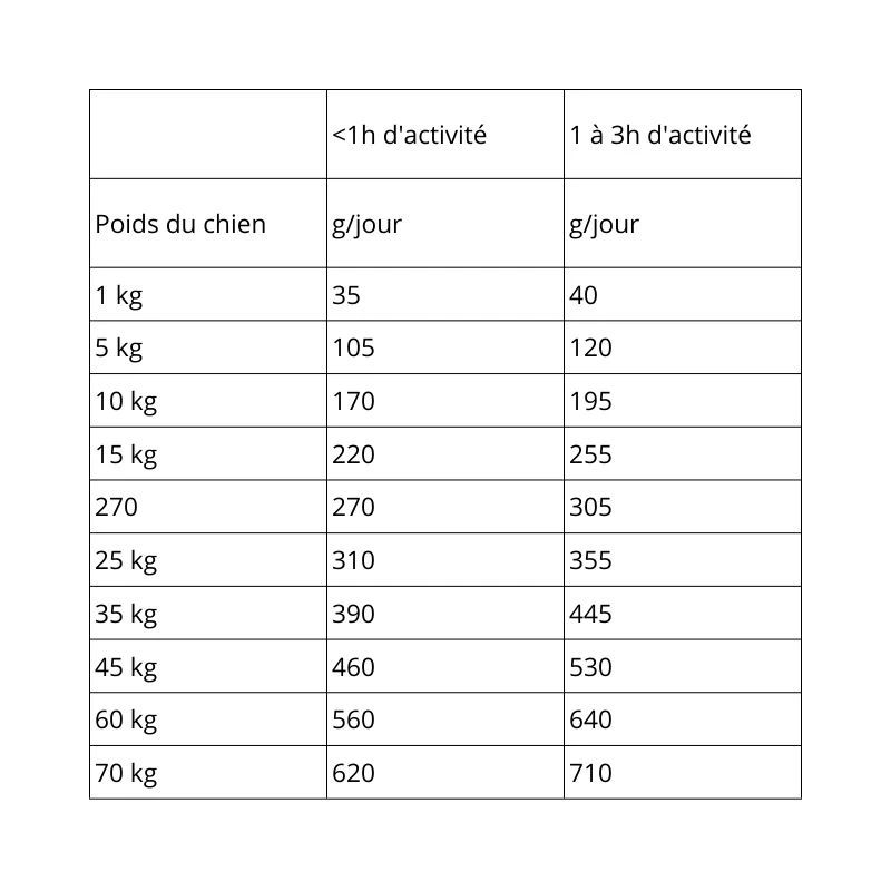 Adapter les rations quotidiennes en fonction du poids, de l’activité et de la condition physique de votre chien.